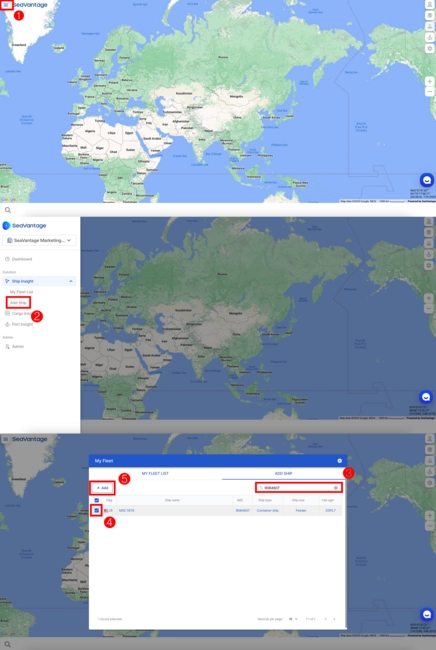 ⑤ Click on the ‘+Add’ button to register the ship under My Fleet.