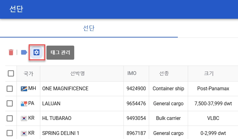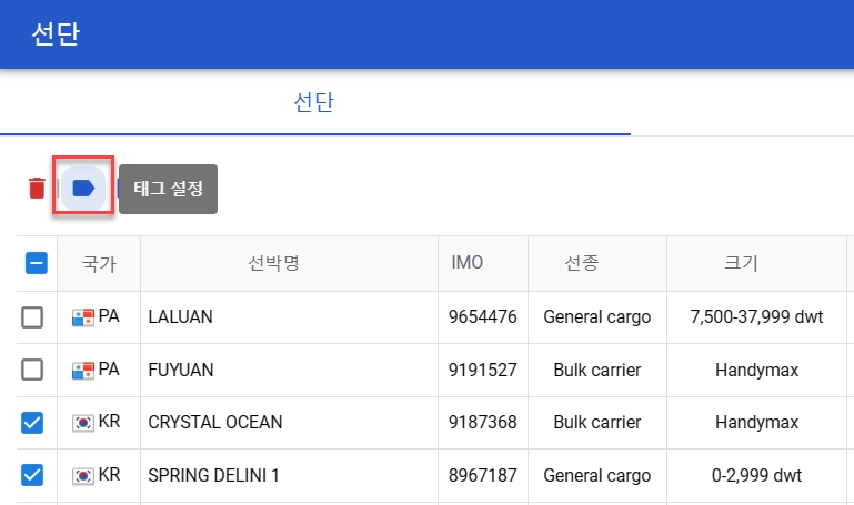Check the ships and click the Set Tag button.