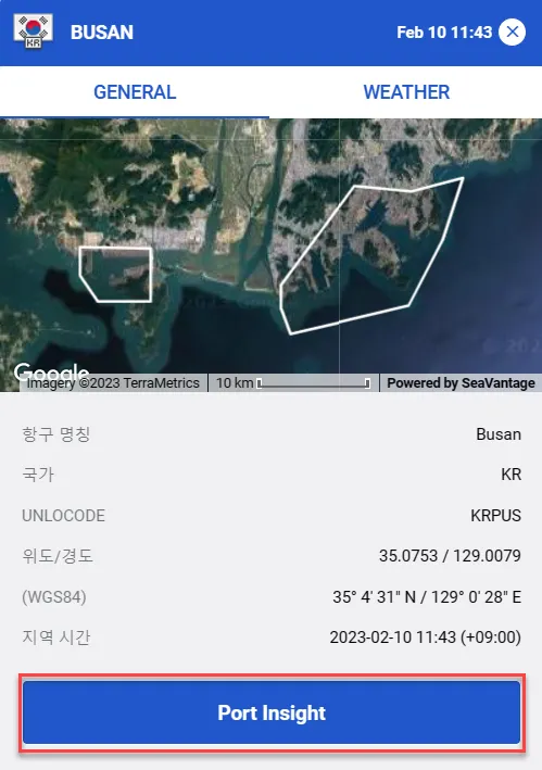 SVMP 로그인 > 지도 맵에서 항구 아이콘 클릭 > 항구 검색 > Port Insight 이동